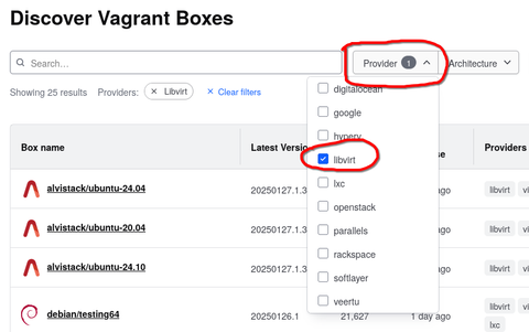 choose your Vagrant box with libvirt support